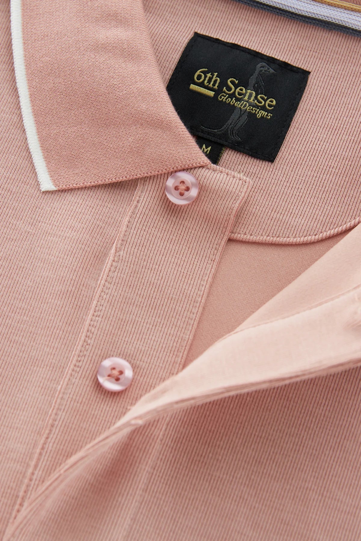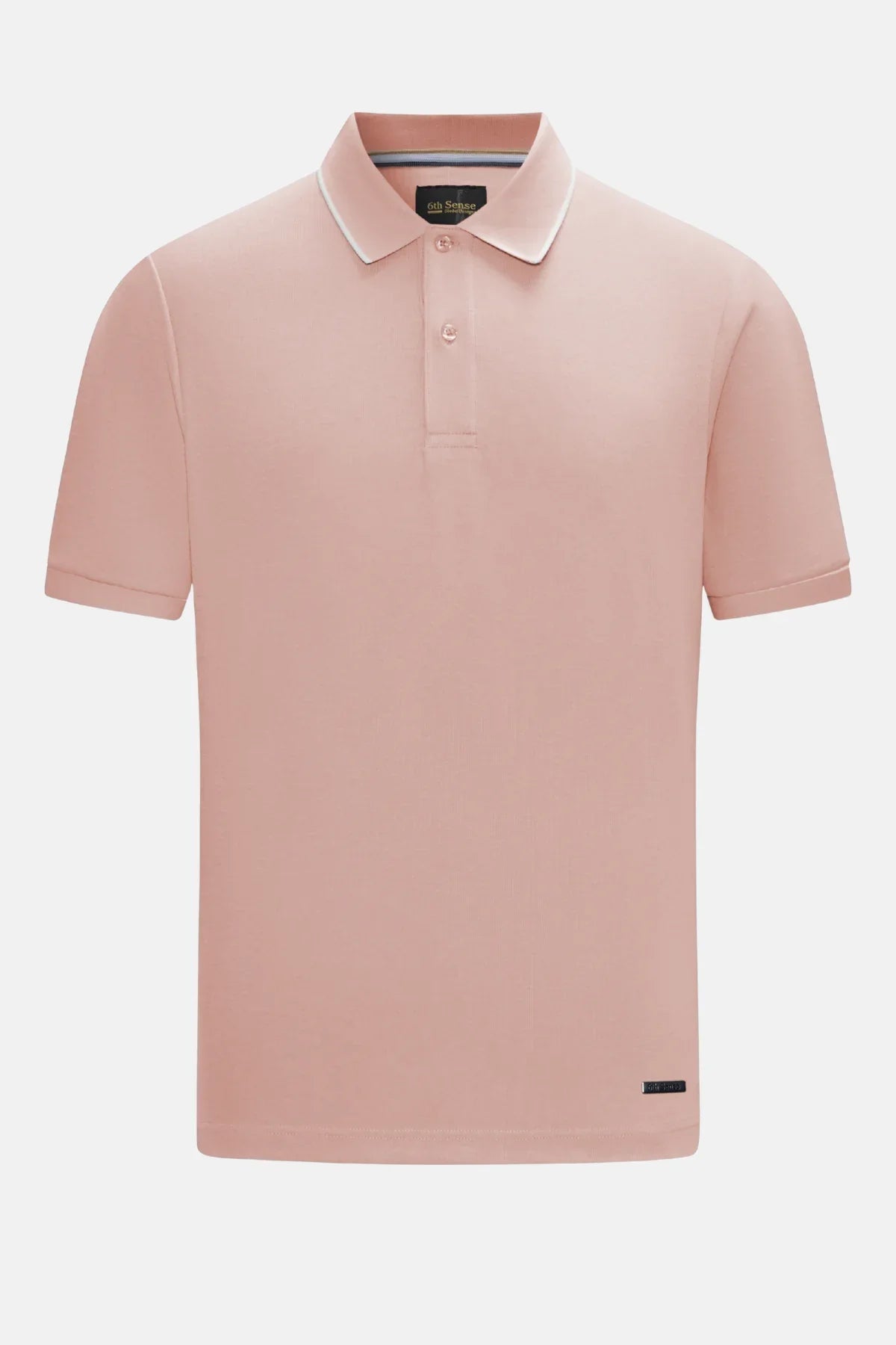 A subtle 6th Sense metal badge near the hem offers understated branding, giving the polo a refined and distinctive touch.