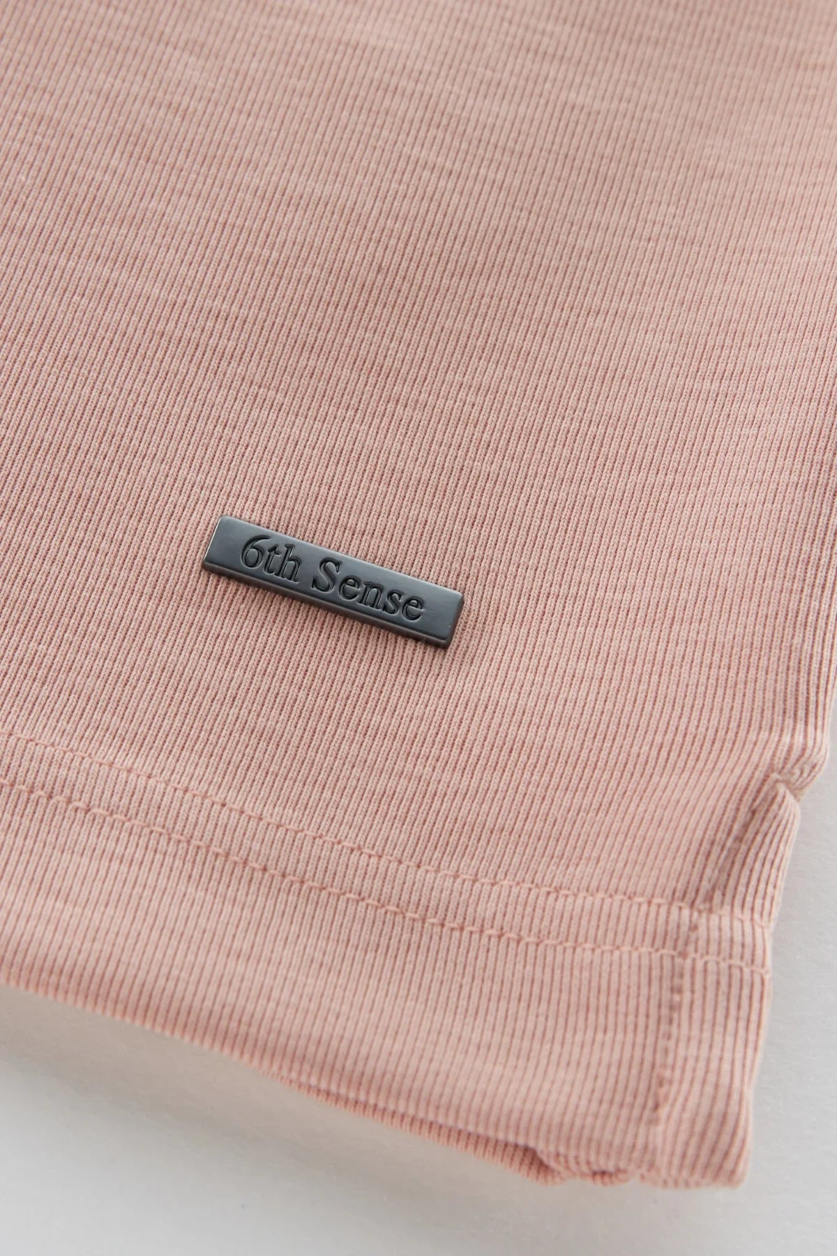 - Subtle 6th Sense metal badge near hem